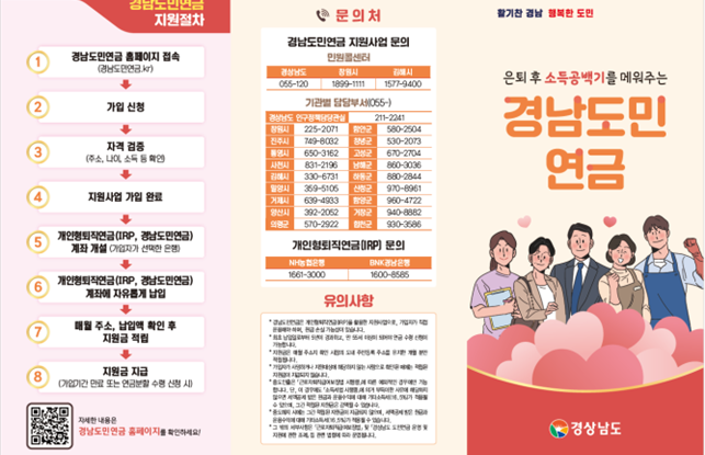 1월19일 부터2월22일 까지‘경남도민연금.kr’에서 가입자 모집 1971~1985년생 도민 대상,연 소득9,352만 원 이하·IRP가입 가능자 누 경남 수출 플러스 성장세 지속 "선박이 끌고 방산"이 밀고. 경남, 최일선 "가축 방역 민간 전문 인력" 공공 수의사 120 명 운영 |